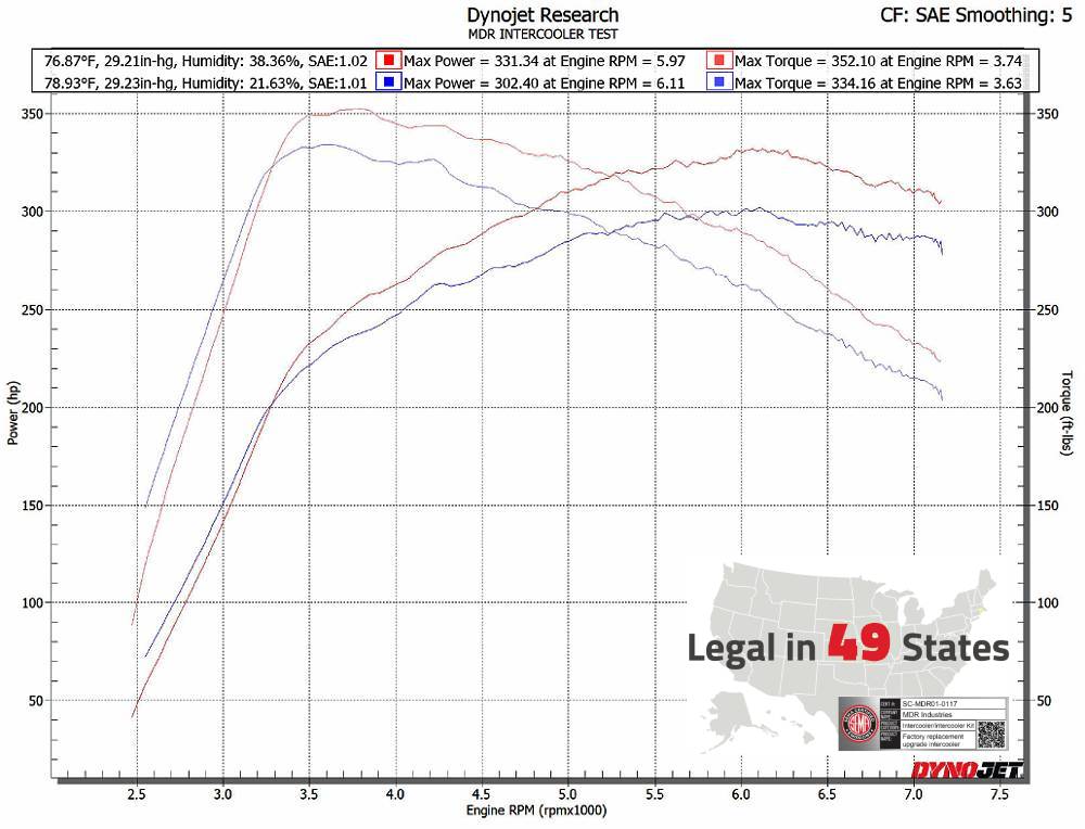 • MDR Intercooler: 331.34 HP / 352.10 ft-lbs Torque @ 27.54 psi