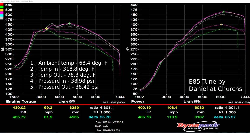 • MDR Intercooler: 465.76 HP / 455.72 ft-lbs Torque @ 38.42 psi